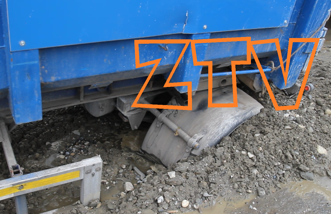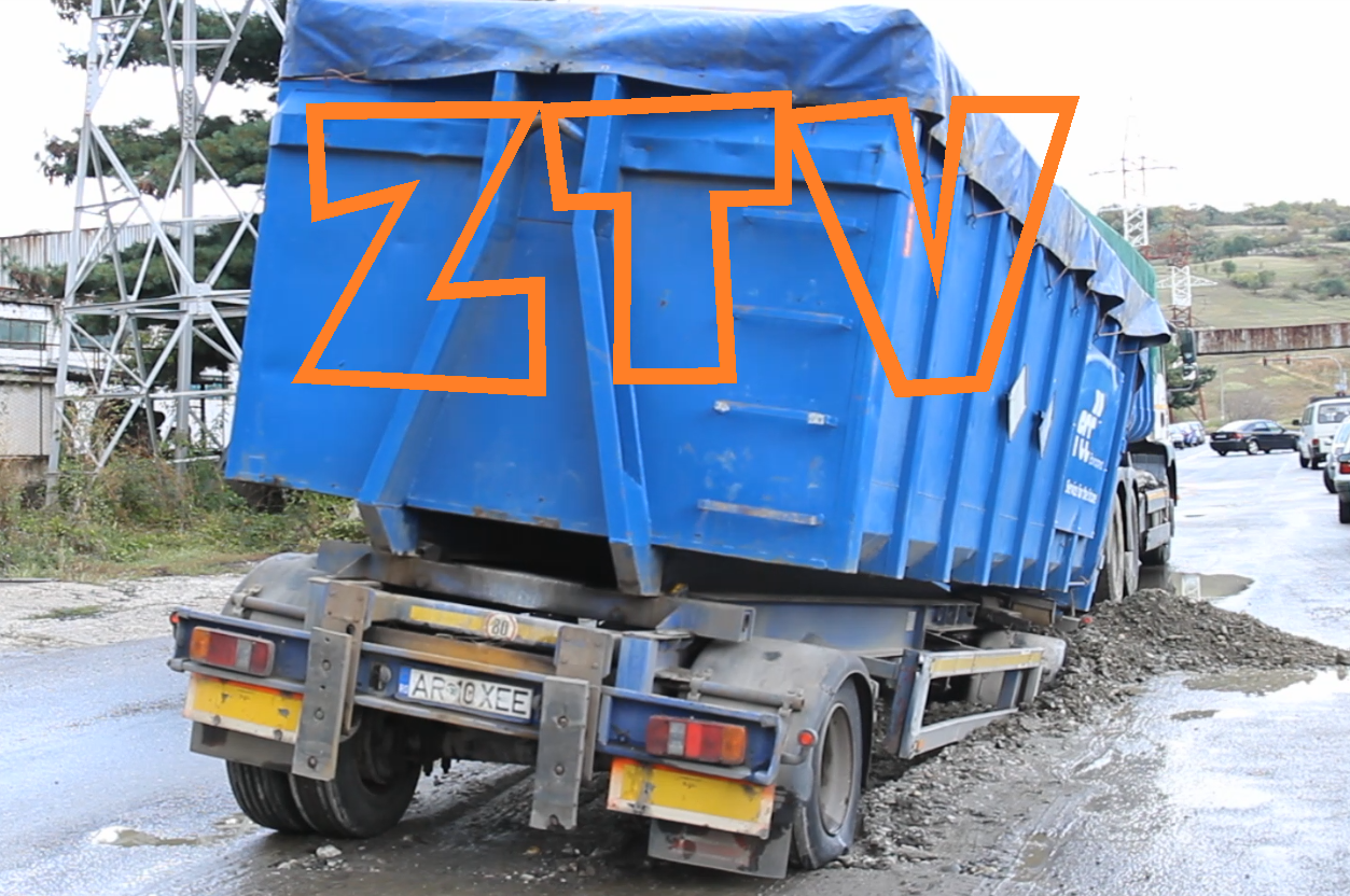 groapa rezultata in urma unor sapaturi efectuate de cei de la Compania de Apa. Soferul nu a mai putut iesi cu autotrenul care a ramas blocat timp de cateva ore pana cand a sosit o macara care sa il tracteze. Nefericitul eveniment a avut loc azi dupa-masa la poarta nr.2 de la Michelin din muncipiul Zalau.