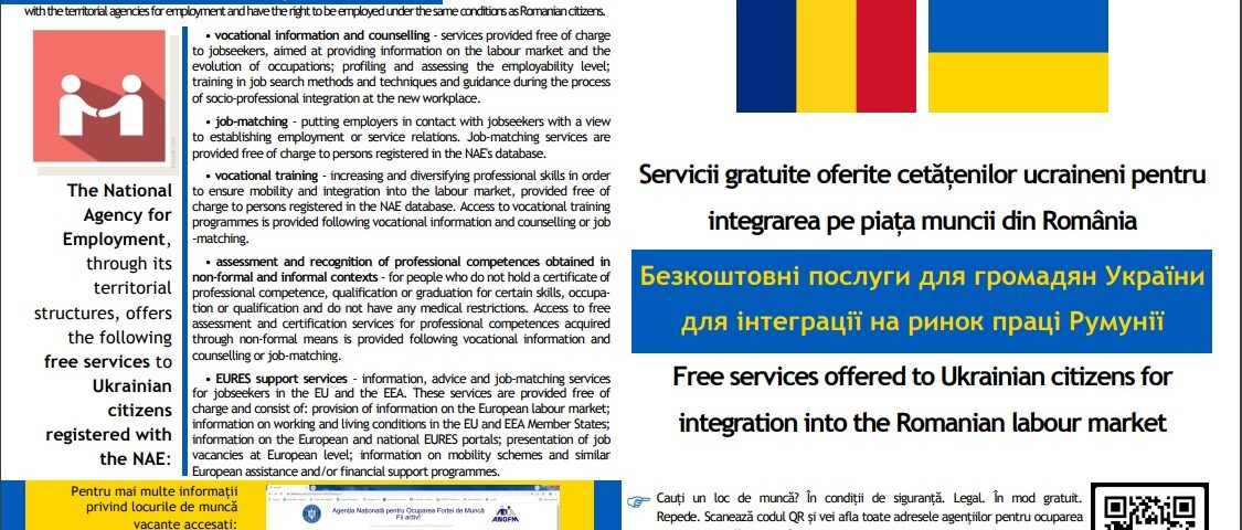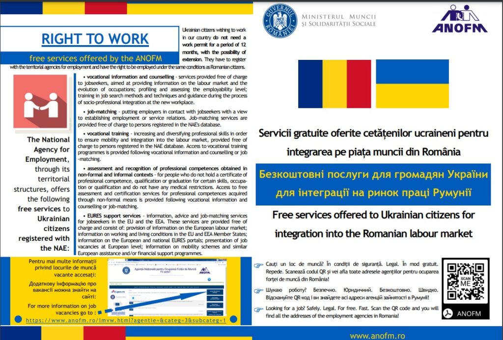 ANOFM a elaborat un pliant în limba română, ucrainiană şi engleză, material ce a fost postat pe site–ul ANOFM, al AJOFM Sălaj şi reţelele de socializare. Pliantul conţine cod QR cu datele de contact ale tuturor agenţiilor judeţene, locale sau puncte de lucru. Ataşat regăsiţi varianta pliantului pentru on-line (mai colorată) şi varianta pentru print.