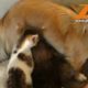 INCREDIBIL! PISICA SUGE LAPTE DE LA O CATEA