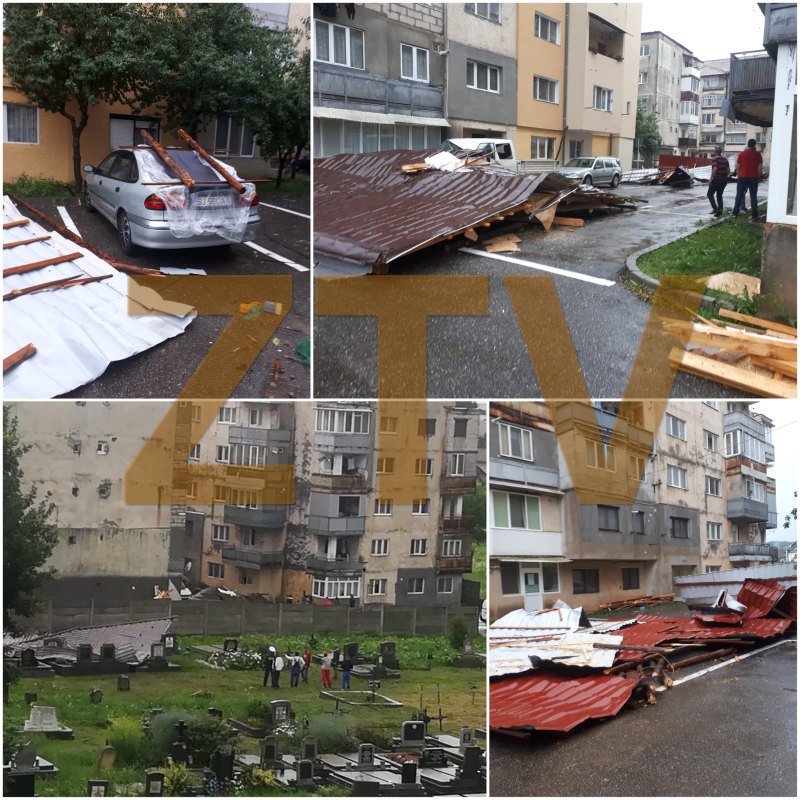 O furtuna de cateva minute a smuls acoperisul unui bloc din localitatea Jibou, iar