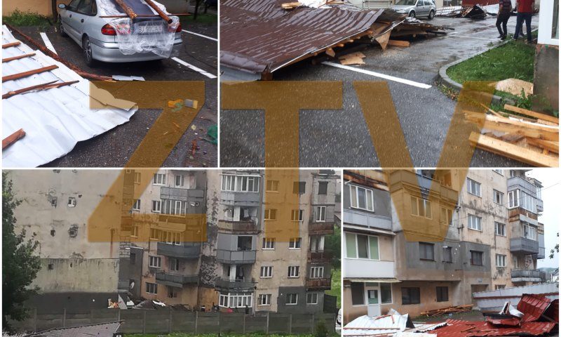 O furtuna de cateva minute a smuls acoperisul unui bloc din localitatea Jibou, iar
