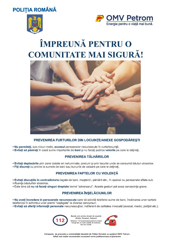 Poliţia Română, cu sprijinul OMV Petrom, în perioada aprilie – iunie 2019. Campania se va desfăşura şi la nivelul judeţului Sălaj.