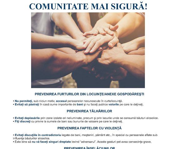 Un segment important în desfăşurarea acţiunilor preventive este reprezentat de informarea cetățenilor din mediul rural cu privire la măsurile de protecţie pe care fiecare persoană trebuie să le cunoască şi să le adopte pentru a-şi spori siguranţa proprie, a familiei sale şi nu în ultimul rând, a comunităţii în care trăieşte.