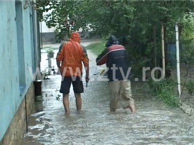 Oamenii au pus mana pe unelte pentru a ajuta apa sa se scurga in canalizare, deoarece crengile si aluviunile acopereau gura canalului in centrul orasului.