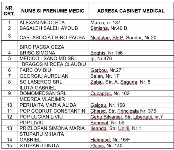 Reamintim faptul că testarea gratuită a pacienţilor pentru depistarea infectării cu virusul SARS-CoV-2 se poate realiza şi în cadrul cabinelelor medicilor de familie. În acest moment 15 medici de familie din judeţ pot realiza testarea cu teste rapide antigen.” – Prefectura Sălaj