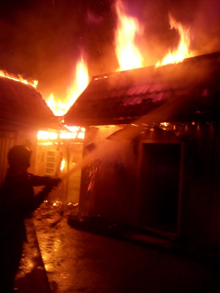 pe strada Traian. Incendiul din localitatea Jibou se manifesta acoperisul bucatariei de vara pe o suprafata de aproximativ 18mp si la acoperisul unei anexe pe suprafata de aprox.10mp.