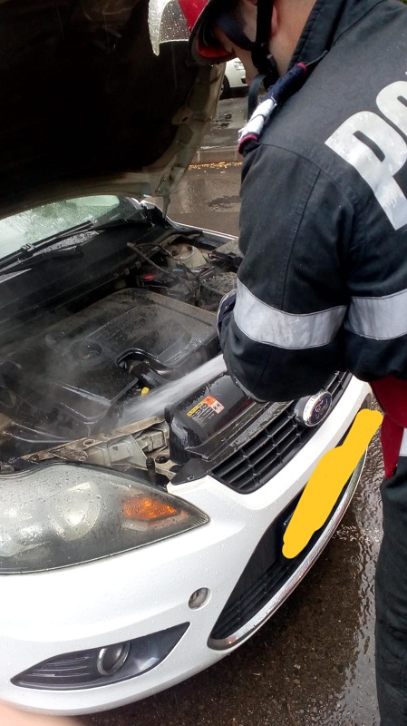 Incendiul a fost de mica intensitate si s-a manifestat la compartimentul motor al autoturismului.