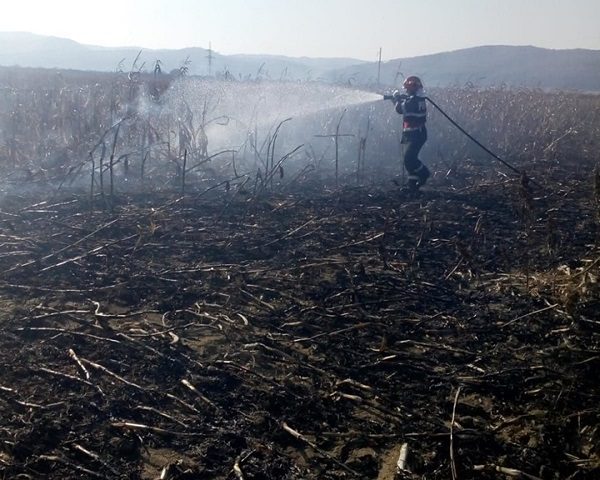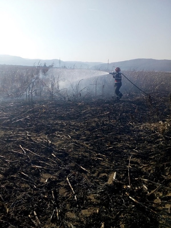 plante furajere şi extins la un lan de porumb. Cauza probabilă de incendiu a fost utilizarea necorespunzătoare a focului deschis în spaţii deschise, flăcările au ars circa 0,30 ha lan porumb şi circa 0,10 vegetaţie uscată.
