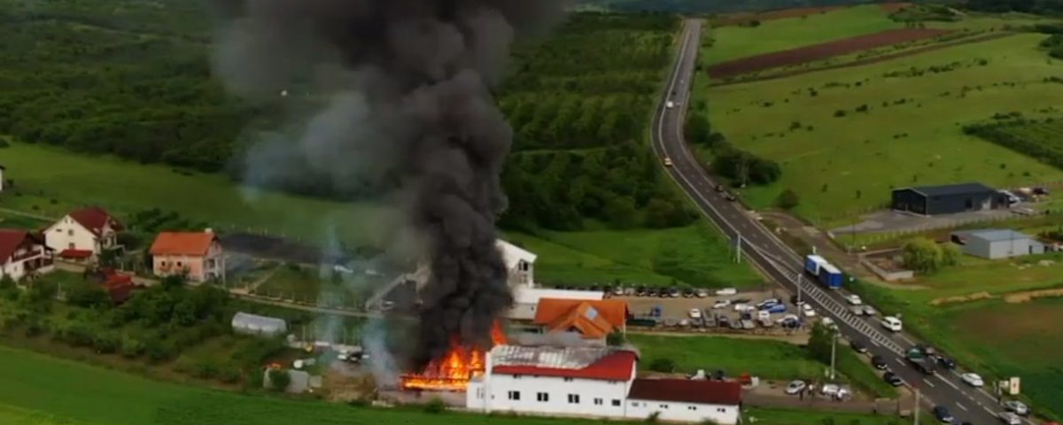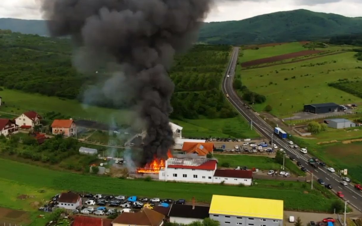 Incendiul se manifesta cu violenta pe o suprafata de aprox 200 mp, la acoperisul unui atelier auto, o terasa si o anexa din lemn. In sprijin se deplaseaza si autoscara Zalau si 1 ASAS de la Sectia Simleu.