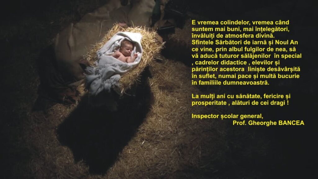 Sfintele Sărbători de iarnă și Noul An ce vine, prin albul fulgilor de nea, să vă aducă tuturor sălăjenilor – în special , cadrelor didactice , elevilor și părinților acestora – liniște desăvârșită în suflet, numai pace și multă bucurie în familiile dumneavoastră.