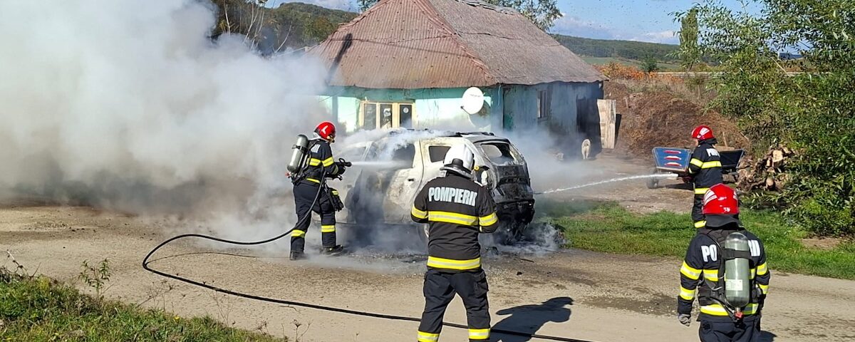Până la sosirea echipajului de pompieri, autospeciala a ars în totalitate.