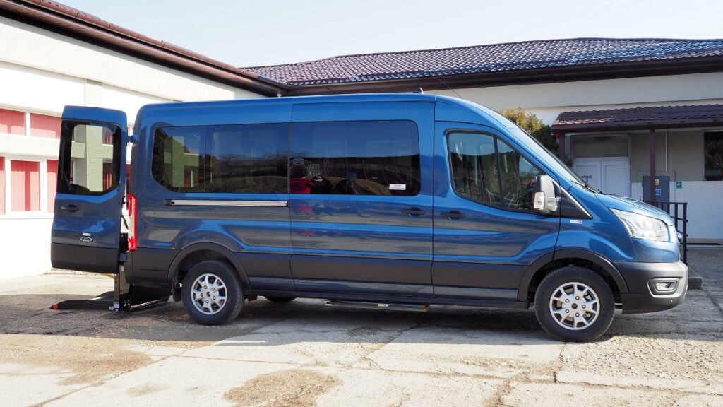 Unitatea are în dotare un microbuz achiziționat în 2005, care nu mai prezintă, însă, nici dotările, nici siguranța corespunzătoare pentru transportul persoanelor cu handicap. Noul autovehicul dispune de 8+1 locuri, putând fi adaptat în funcție de nevoi. De asemenea, este dotat cu un lift hidraulic pentru urcarea și coborârea persoanei cu handicap și a însoțitorului, și poate primi la bord trei fotolii rulante.