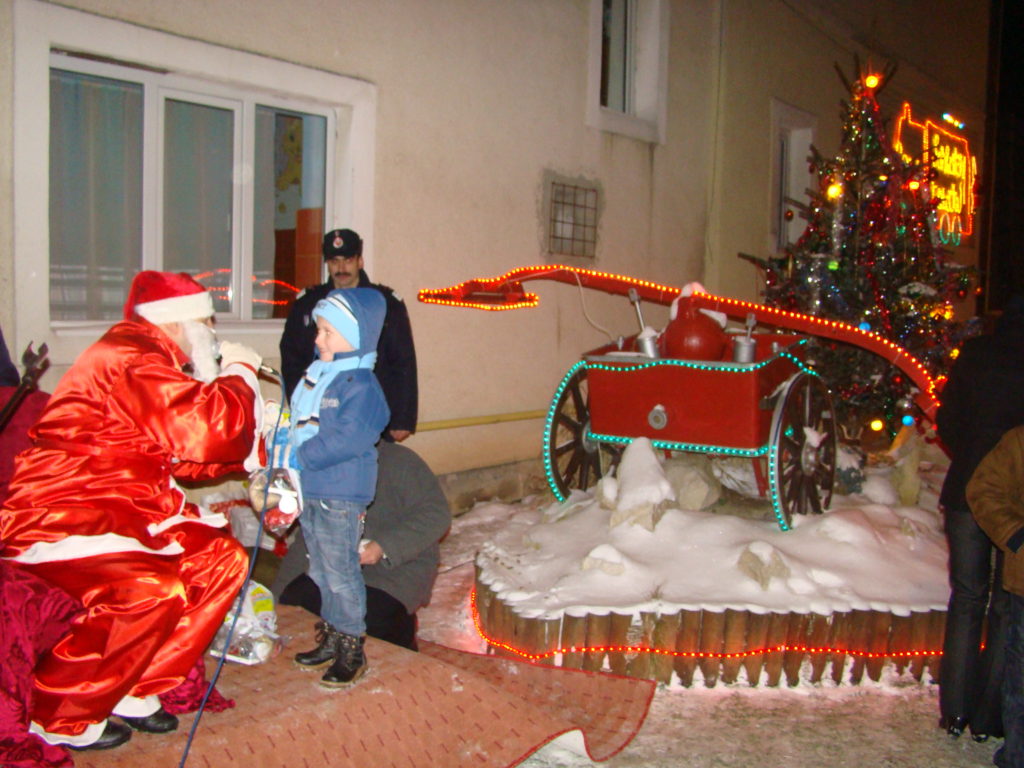 Zalău. De cadouri s-au bucurat un număr de 103 copii.Spre încântarea celor mici, Moşul a sosit cu o autospecială de intervenţie cu semnalele acustice şi luminoase pornite. Copii au cântat colinde şi au recitat poezii fiind răsplătiţi de către Moş cu daruri.