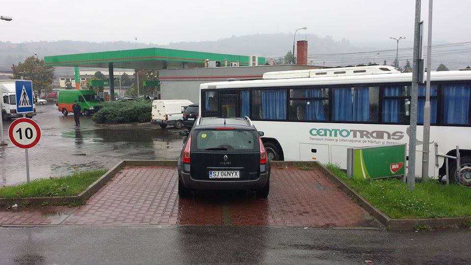 Megane in parcarea de langa benzinaria MOL din Zalau care ocupa doua locuri. Persoana nemultumita de modul in care si-a lasat masina a facut cateva poze pe care le-a trimis la redactie, in ideea in care poate pe viitor soferii se vor gandi si se vor uita de 2 ori inainte sa parcheze la voia intamplarii.