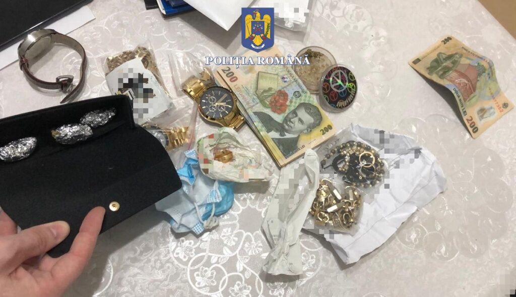 În urma celor 11 percheziții domiciliare efectuate, polițiștii au descoperit și ridicat în vederea continuării cercetărilor, 23.250 de euro, 17.000 de lei, 6.740 de franci elvețieni, 655 de lire englezești, 4 grame de canabis, un pistol și 60 de cartușe deținute ilegal, mai multe ceasuri și bijuterii din diferite metale, documente, înscrisuri, laptop-uri, o tabletă și 19 telefoane mobile.