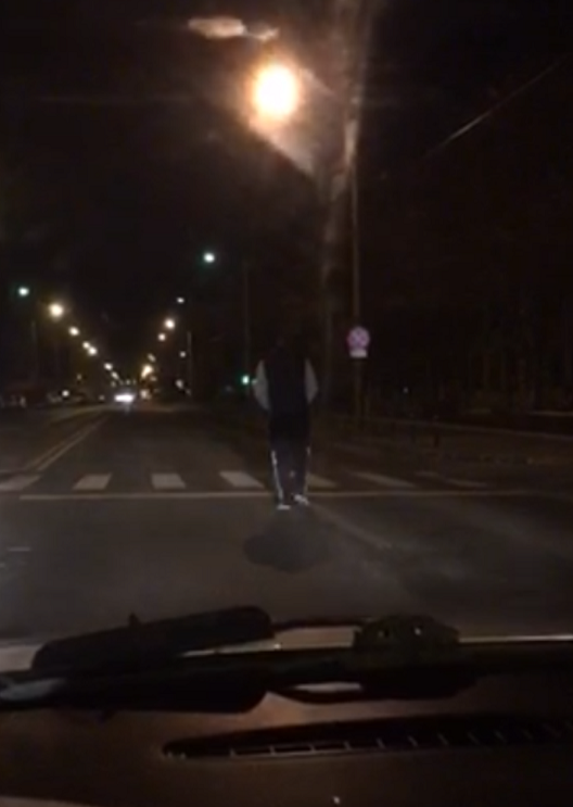 ale soferilor, se pare ca si pietonii au probleme cu respectarea bunului simt. Un telespectator a surprins la sfarsit de saptamana un pieton care se plimba noaptea pe drum fara sa ii pese ca ar putea fi accidentat de catre o masina, desi pe trotuar era destul loc. Din fericire nu s-a produs nici un eveniment rutier, insa pe viitor ar fi recomandat sa fie mai atent la viata lui si la celor care circula pe drumurile publice.