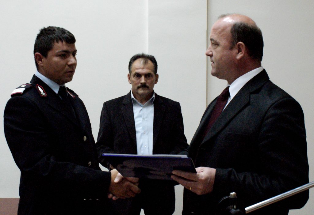 Pompierul Boies Alin a primit diplome pentru ca a salvat o persoana de la inec