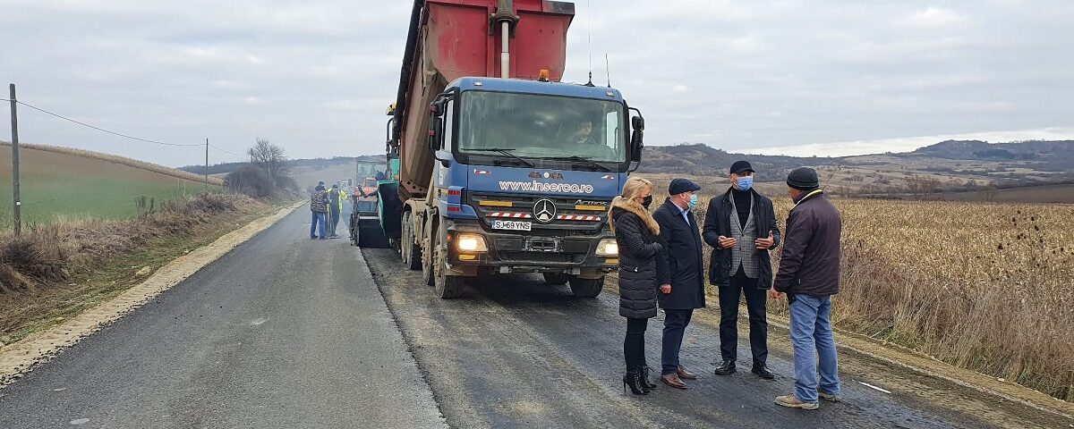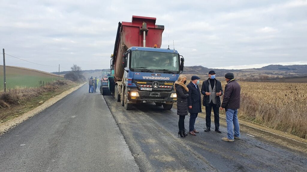 Președintele Consiliului Județean Sălaj, Dinu Iancu-Sălăjanu, însoțit de vicepreședintele Szilágyi Róbert István și de directorul Direcției Investiții și Programe Publice, Lavinia Ghilea, a făcut, astăzi, o vizită pe șantierul DJ 108D: Crișeni (DN 1H) – Cehu Silvaniei (DJ 196), pentru a vedea care este stadiul lucrărilor de reabilitare și modernizare. „Antreprenorul a reușit să execute mai mult decât am anticipat la începutul anului, astfel că, pentru a putea susține ritmul de execuție, am alocat sume suplimentare. Au existat, însă, și unele probleme – precum nevoia relocării rețelei de apă – care au încetinit ritmul de lucru pe șantier. În prezent, se toarnă stratul de binder pe o porțiune de 3,2 km, pe partea dreaptă a sensului de mers spre Cehu Silvaniei, lucrările urmând să fie finalizate în cursul acestei săptămâni. În urma vizitei pe care am făcut-o, am sesizat constructorul cu privire la refacerea urgentă a zonelor degradate de pe tronsoanele de drum ce nu au fost încă abordate și i-am dat ca termen 6 decembrie pentru a remedia deficiențele constatate, astfel încât să reducem disconfortul creat participanților la trafic”, a declarat Dinu Iancu-Sălăjanu, președintele CJ Sălaj.