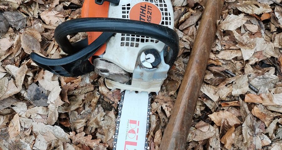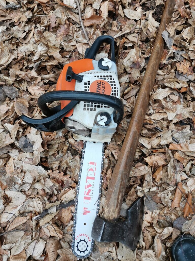 Masa lemnoasă, un motofierăstrău și un topor au fost ridicate în vederea confiscării.