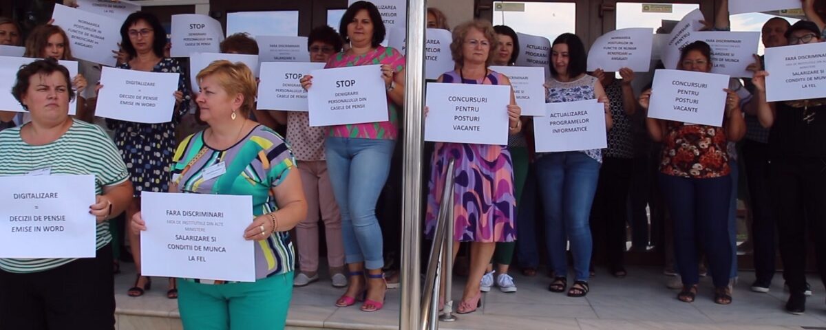 Joi 17.08.2023 la Casa Judeteana de Pensii Salaj a avut loc un protest spontan, incepand cu ora 13:00. Mai multi angajati au iesit la intrarea institutiei cu pancarte pe care erau afisate cerintele lor: Hotararile privind reorganizarea institutiilor din subordinea Ministerului Muncii sa se faca dupa analize si studii adevarate privind munca angajatilor: normarea personalului in functie de volumul de activitate al institutiei – beneficiari vs. numar angajati;
