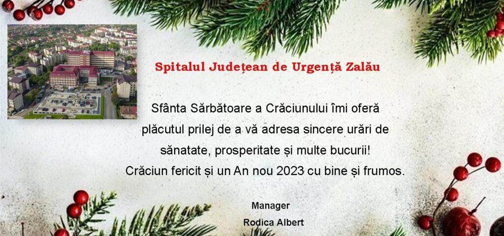 Sfânta Sărbătoare a Crăciunului îmi oferă plăcutul prilej de a vă adresa sincere urări de sănătate, prosperitate și multe bucurii! Crăciun fericit și un An nou 2023 cu bine și frumos. Rodica Albert – manager Spitalul Județean de Urgență Sălaj
