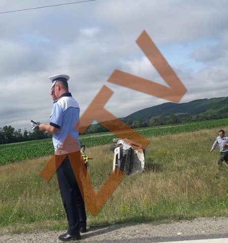 răsturnat cu autospeciala de serviciu, în afara părţii carosabile.
