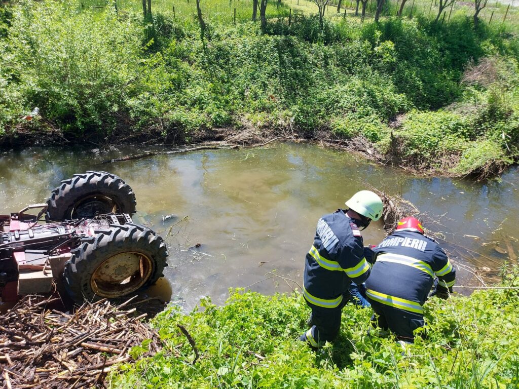Pompierii jibouani au fost solicitati sa intervina la un eveniment rutier in care a fost implicat un tractor rasturnat cu o persoana surprinsa in interior in Jibou, strada Vailor.