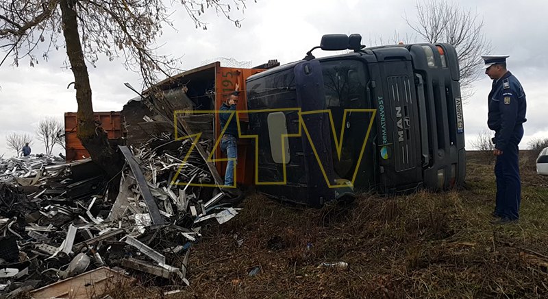 autoutilitare de 38 de ani din judetul Cluj, din cauza neadaptarii vitezei de deplasare la conditiile de drum, intr-o curba a pierdut controlul directiei de deplasare a parasit partea carosabila si s-a rasturnat. In urma evenimentului nu au rezultat victime, doar pagube materiale. Soferul a fost testat cu aparatul alcooltest, rezultatul fiind negativ. Autoutilitara a fost incarcat cu aluminiu, care s-a imprastiat pe campul de langa drum. Evenimentul a fost solutionat ca si tamponare, ne-a declarat Maria Cristea purtator de cuvant Politia Salaj.
