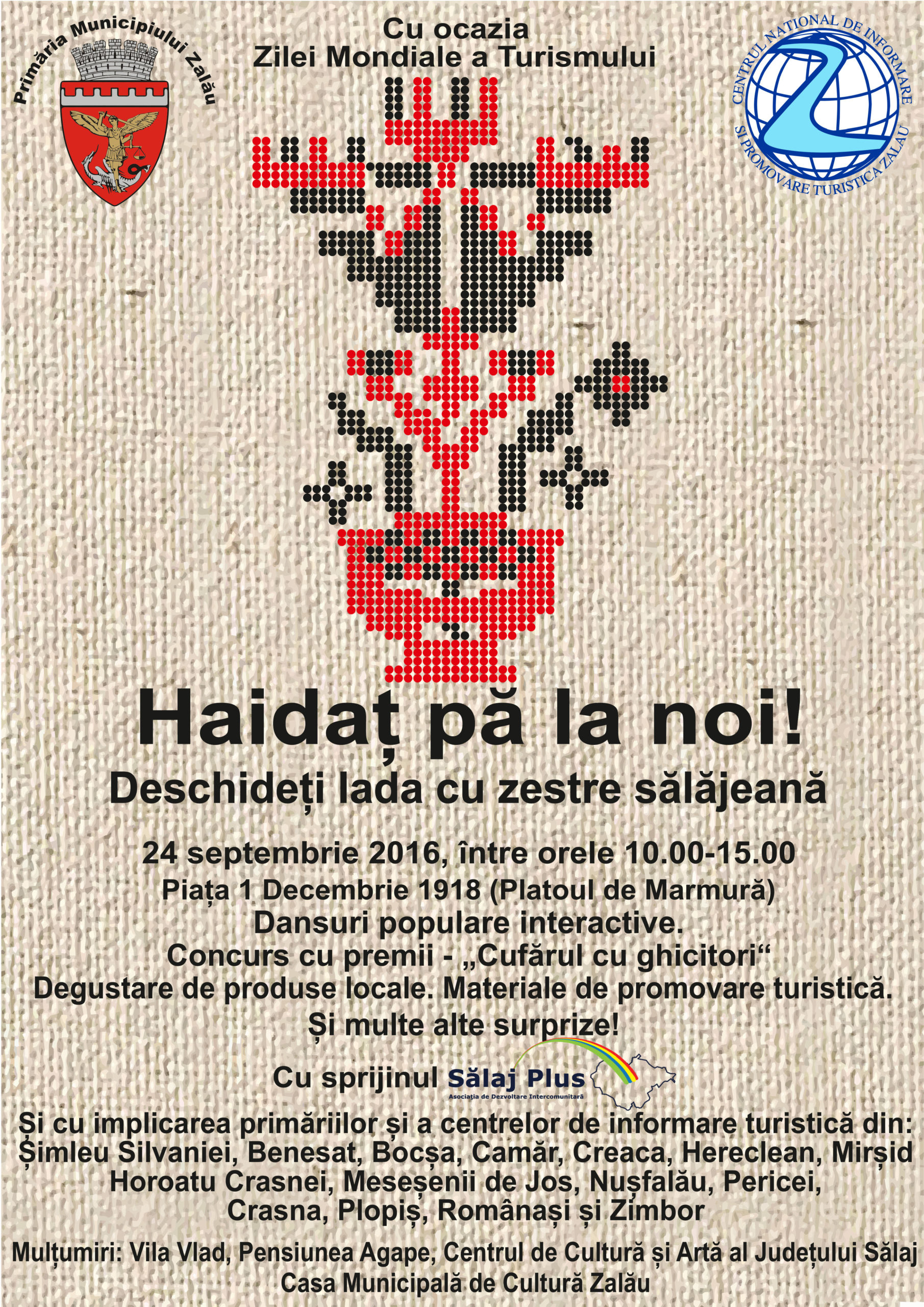 2016, între orele 10:00–15:00, în Piaţa 1 Decembrie 1918 din Zalău, evenimentul “Haidaţ pă la noi! Deschideţi lada cu zestre sălăjeană”.
