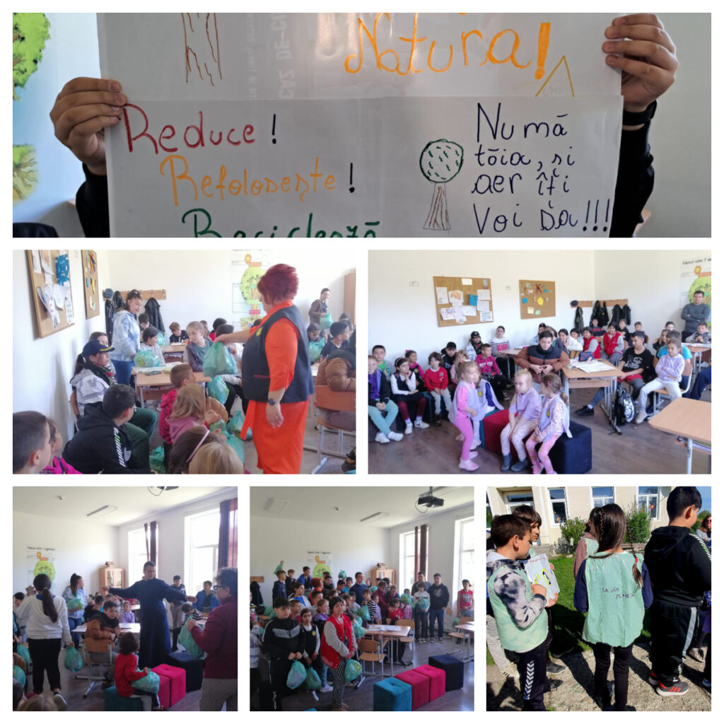 Suntem în Săptămâna Verde, iar azi, după ce ieri am descoperit împreună copacul cu problemele de mediu ale comunității locale, am trecut la acțiune, am găsit soluții, ne-am creat mesaje și sloganuri cu impact și am derulat un marș de constientizare a comunității, iar la final cu sprijinul Parohiei Ortodoxe Dobrin a venit Iepurașul cu daruri pentru fiecare preșcolar și elev din școala noastră. Am vorbit și despre carte, drumul ei de la condei la ebook și până la fimalul săptămânii elevi își vor realiza propriul ebook cu emoții, gânduri, imagini și filmulețe din timpul activităților la care au participat în această săptămână, pe care o vor prezenta în prima zi de după vacanța de Paște.
