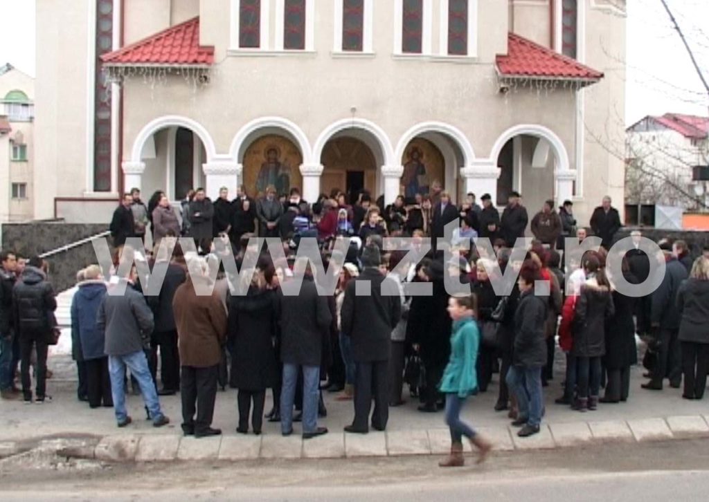 Sute de enoriasi s-au adunat la iesire din biserica Sfantul Stefan pentru a protesta impotriva deciziei luate de episcopul Salajului