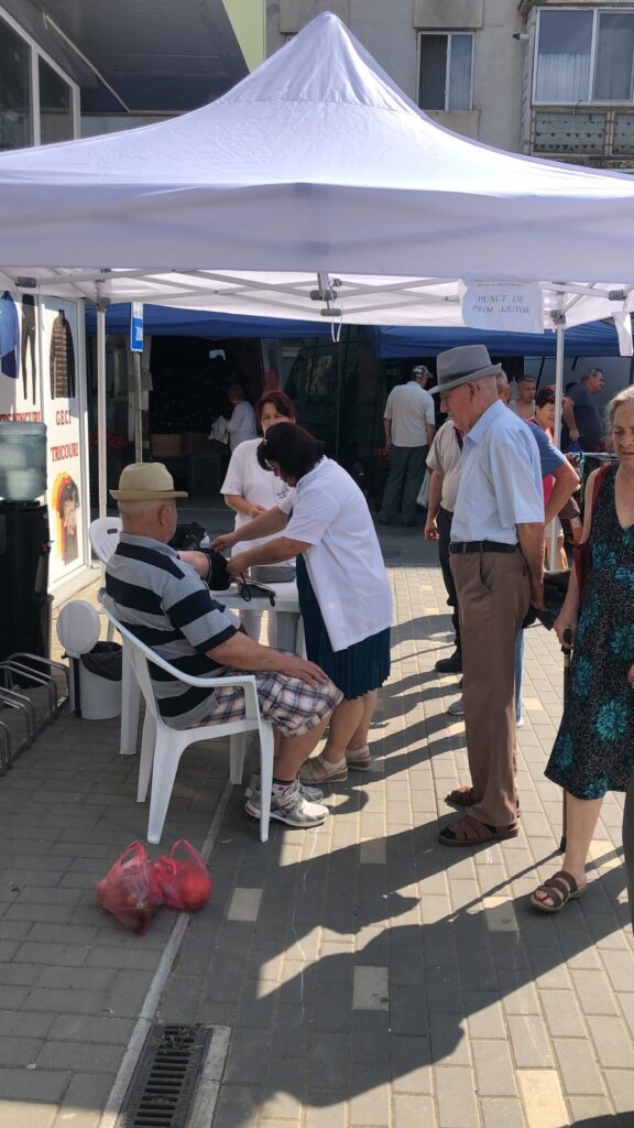 Până la ora 18.00, personalul medical din cadrul Direcției de Asistență Socială a venit în sprijinul cetățenilor prin servicii de prim-ajutor și distribuire a apei potabile în vederea hidratării.