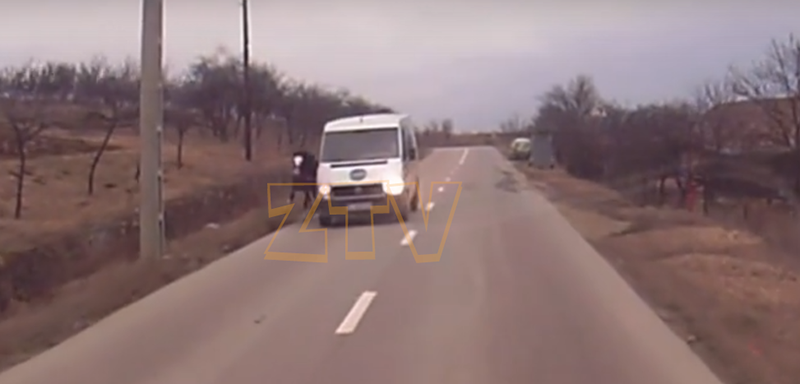 Soferul care a fost filmat in timp ce conducea autoutilitara cu calul legat de oglinda retrovizoare a fost identificat