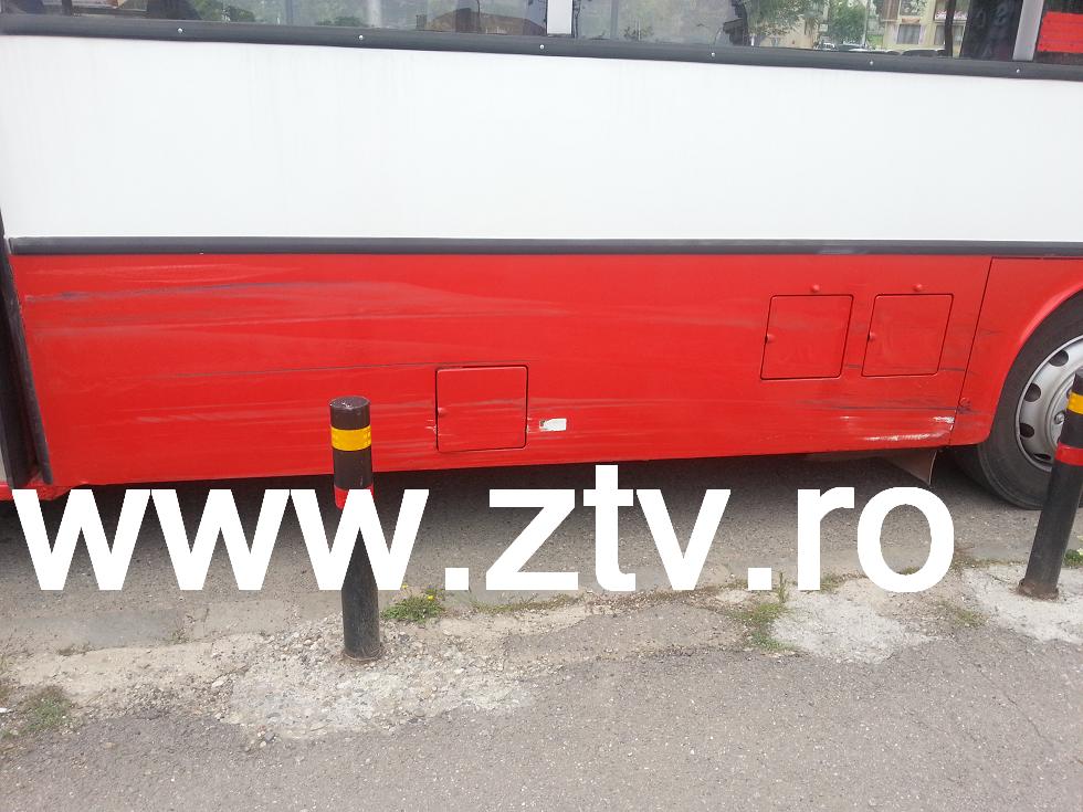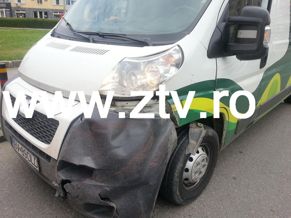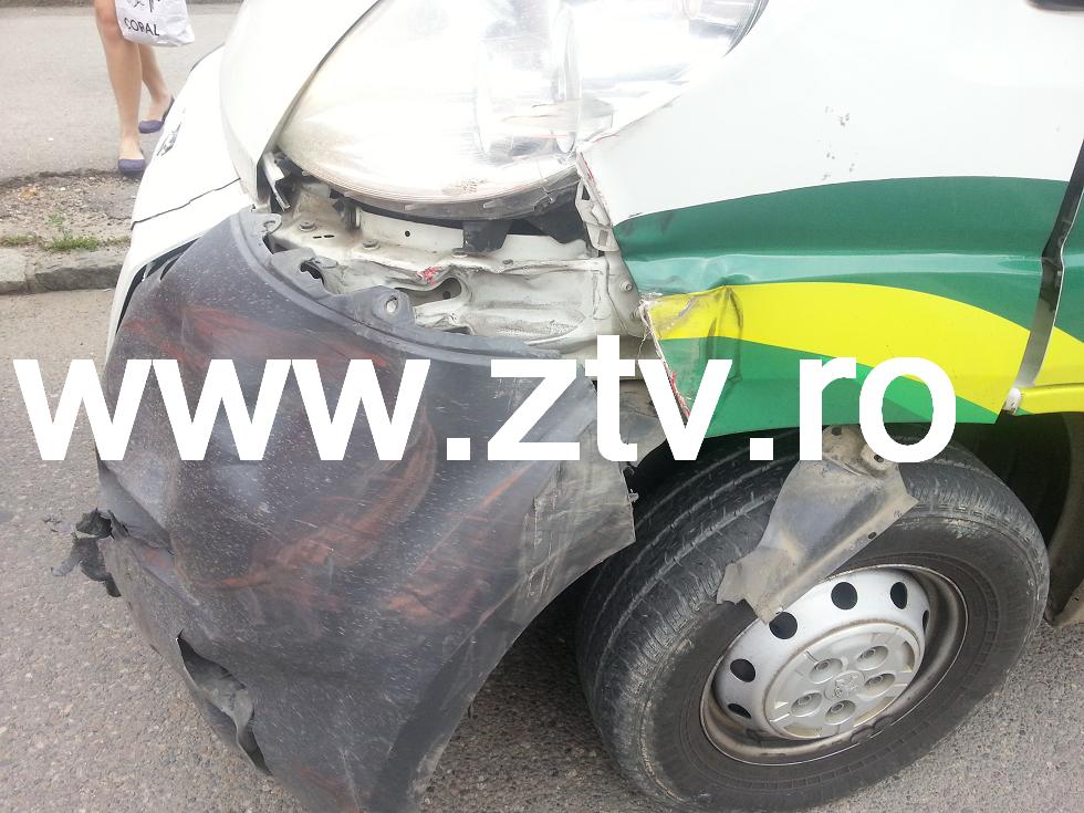 loc in municipiul Zalau, in apropiere de fostul cinema Scala. Soferul care transporta produse lactate a virat dreapta, fara sa se asigure si nu a acordat prioritate de trecere unui autobuz care circula regulamentar cu pasagerii spre Dumbrava Nord.