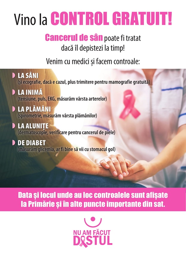 a 5-a ediție a campaniei „Nu am făcut destul”, care are ca scop testarea gratuită pentru depistarea cancerului la sân în rândul femeilor din mediul rural.