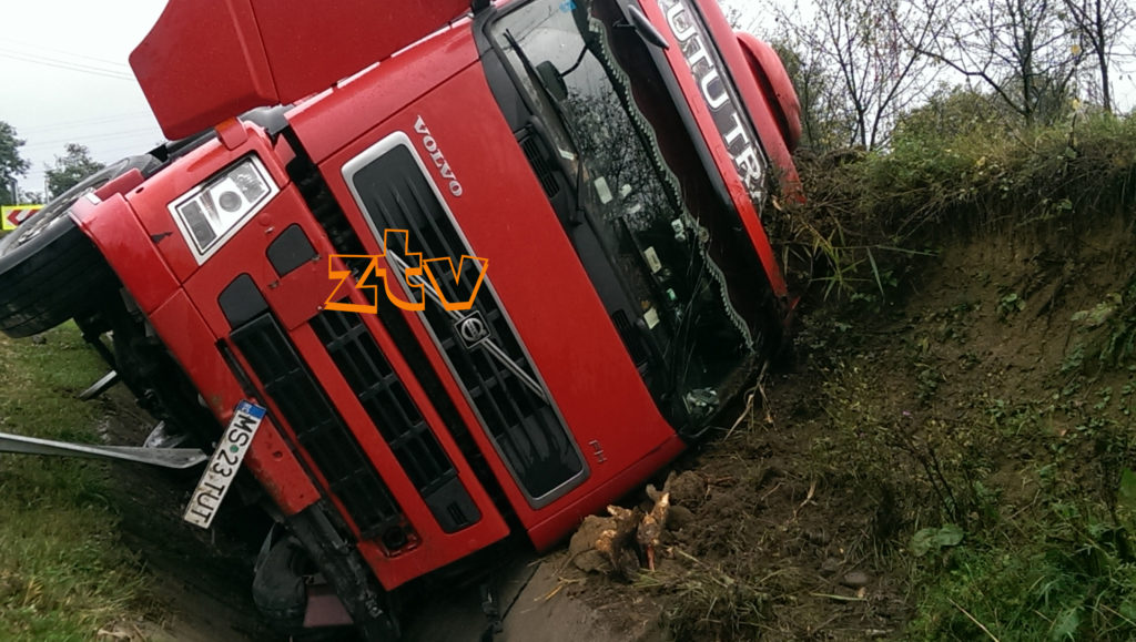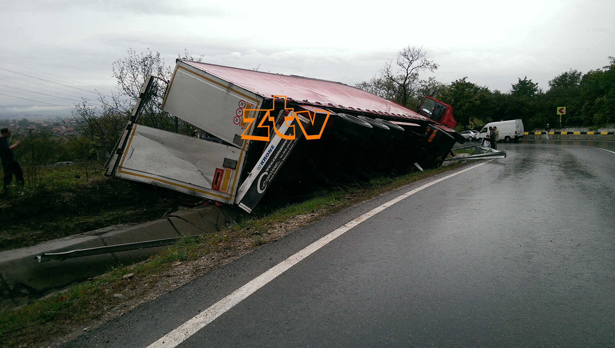 A ajuns cu tirul in sant, aceasta este patania unu sofer care nu a adaptat viteza la conditiile