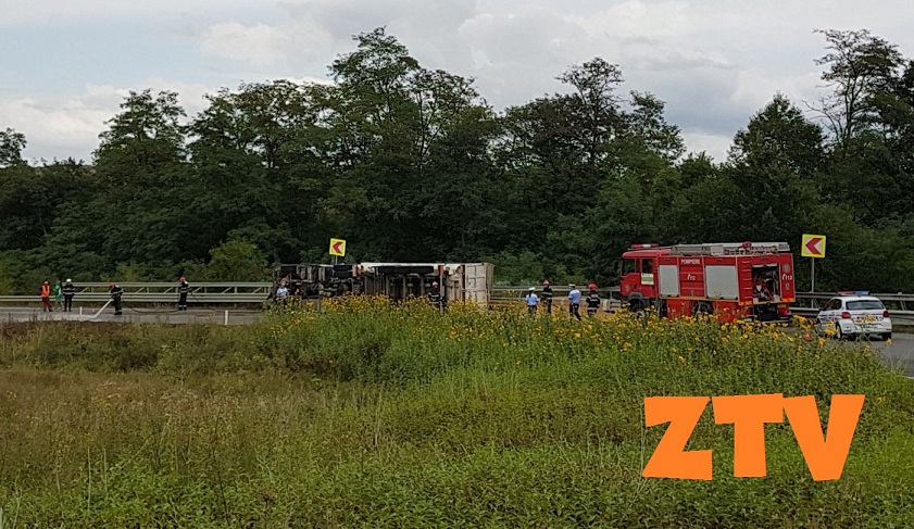 dealul Criseniului in urma cu putin timp. Pompierii au scos soferul din cabina, l-au predat echipei SMURD care a acordat ingrijiri medicale si l-a transportat la spital.