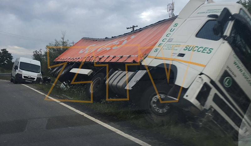 Pompierii ajunşi la faţa locului au asigurat măsuri PSI, din fericire şoferul autotrenului nu a fost rănit.