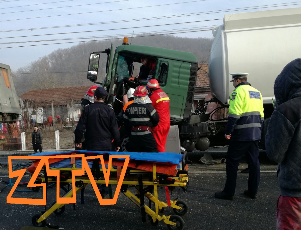 localitatea Galgau, judetul Salaj. Din primele informatii primite de la telespectatorii nostri se pare ca la fata locului au intervenit 2 autospeciale de la ISU Salaj. Soferul tirului a fost descarcerat de catre pompieri sustine unul dintre participantii la trafic.