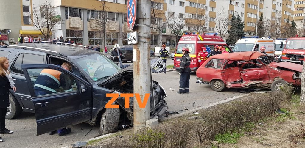 impact puternic care a avut loc intre un Mercedes si o Dacia Break 1310.