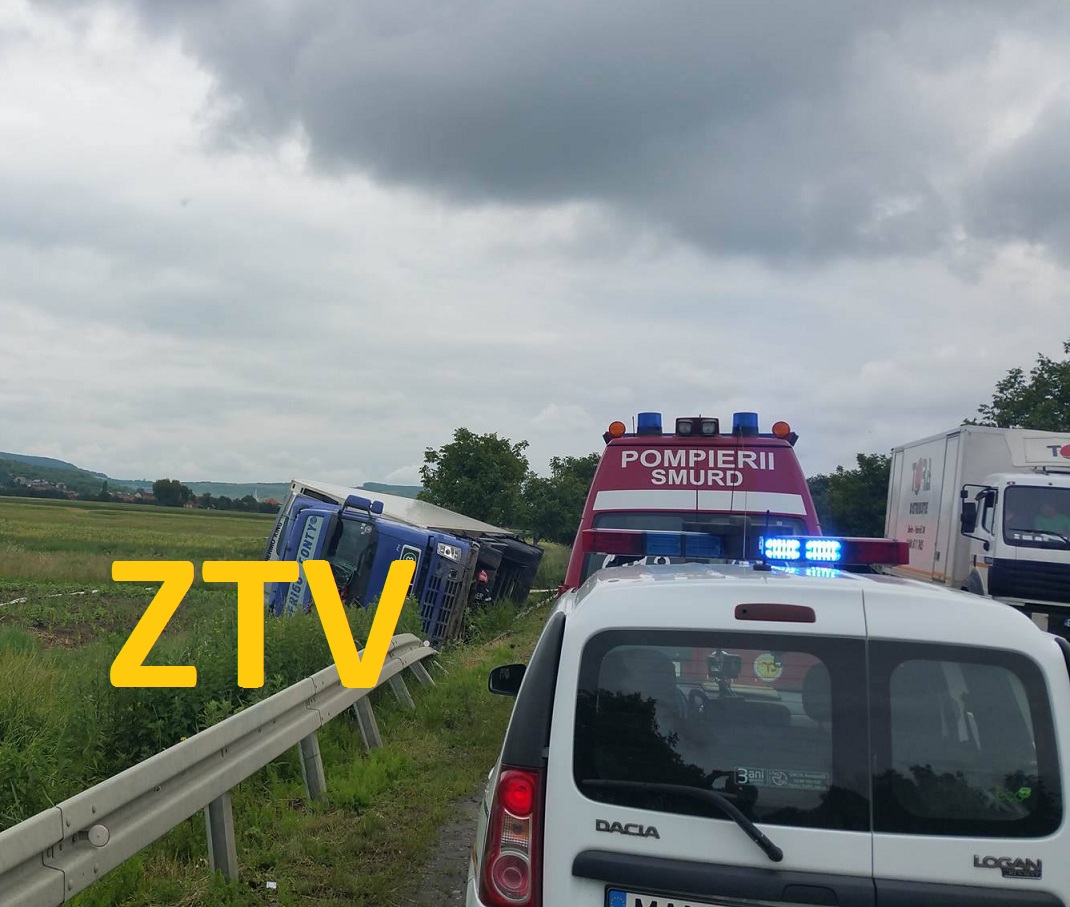 Un tir incarcat cu ambalaje s-a rasturnat intre localitatea Pericei si Simleu, pe DN 1H. La fata locului au fost solicitati pompierii si