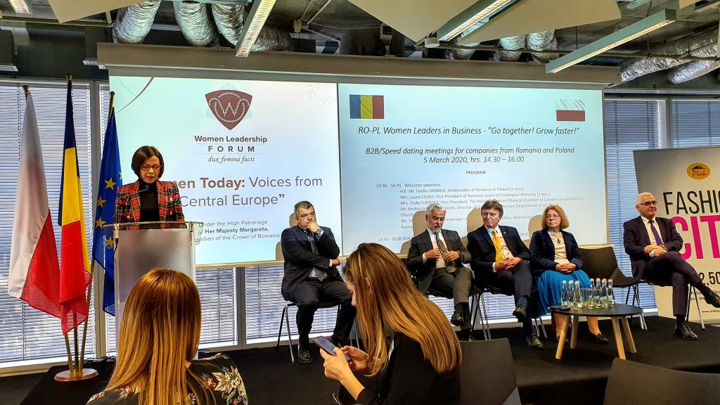La evenimentul RO-PL Women Leaders in Business – „Go together! Grow faster!”, a vorbit H.E. Mr. Ovidiu DRANGA Ambasadorul Romîniei în Polonia, d-na Laura Ciuhu Vicepresedinte al UNPR, dl. Gheorghe Marian Cristescu Directorul Camerei de Comert Romano-Poloneze, si altii.