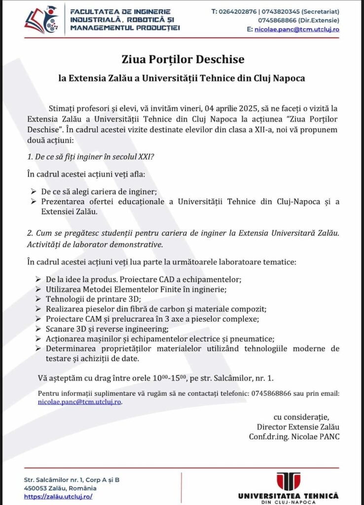 Ziua portilor deschise la Extensia Zalau a Universitatii Tehnice din Cluj Napoca