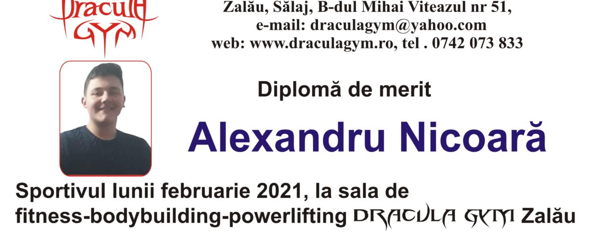 Azi, il felicitam pe Alex Nicoara, care s-a inscris la sala Dracula Gym cu dorinta de a slabi, iar dupa o luna jumate a reusit sa slabeasca 15 kg. Cu un program adecvat, antrenament cu personal trainer si cu multa munca a reusit sa demonstreze ca este un tanar ambitios si serios, iar rezultatele s-au vazut repede.