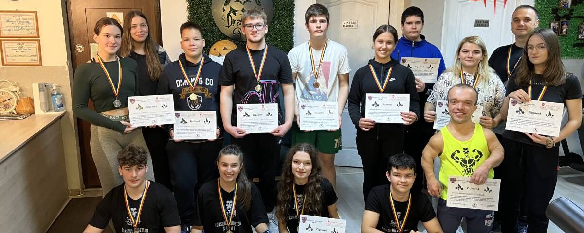 Joi 27.10.2022 Clubul Sportiv Dracula Gym in colaborare cu Consiliul Judetean Salaj a organizat evenimentul ”Prin sport impotriva anxietatii, depresiei și stresului”. La aceasta competitie au participat sportivi, fete si baieti la doua categorii, incepatori si avansati. Participantii au ridicat in 3 incercari o greutate maxima la proba indreptari. Majoritatea tinerilor au fost la prima participare si emotiile au fost mari, insa au reusit sa ridice greutati la care poate nici nu au visat. Castigatoarea locului 1 la fete incepatoare a fost Roxana Flore, o tanara care pare firava si a demonstrat ca o fata poate sa fie puternica chiar daca nu are muschi mari. Geanina Tap este vicecampioana de anul trecut, iar anul acesta a reusit sa isi creasca performanta si a obtinut locul 1, intrand in competitie la categoria avansati. Loga Boti este un tanar care a ajuns la sala de fitness Dracula Gym pentru a slabi, dar si-a crescut forta si a obtinut locul 1 la categoria incepatori. La categoria baieti avansati medalia de aur, cupa si tricoul de campion l-a obtinut Andrei Popan, cel care anul trecut la concursul de genuflexiuni a ocupat locul 3. Andrei se antreneaza intens si a ridicat la indreptari 200 kg cand el are doar 16 ani. In aceasta competitie au fost prezenti doi sportivi care merita aprecierile noastre deoarece este vorba despre un tata si fiica lui, Mara Lemeni, care a obtinut locul 2 si Ionut Lemeni locul 3.