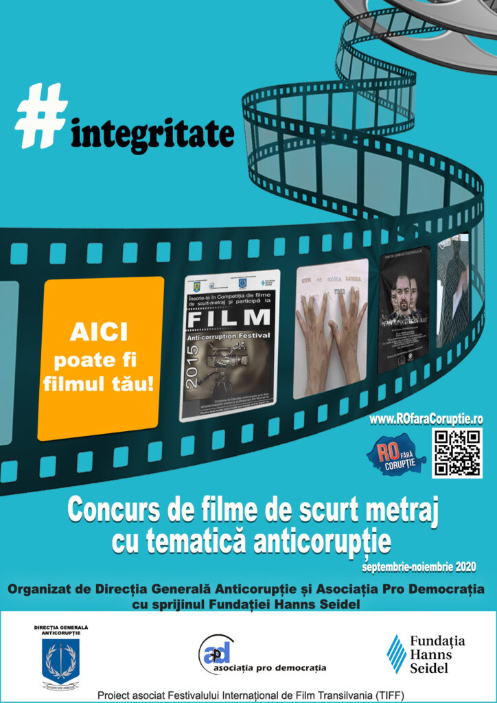 Direcția Generală Anticorupție, în parteneriat cu Asociația Pro Democrația și Fundația Hanns Seidel România derulează, în perioada octombrie – decembrie 2020, Proiectul #Integritate 2020, în cadrul căruia este organizat, ca activitate principală, un concurs de filme de scurt metraj cu tematică anticorupție.