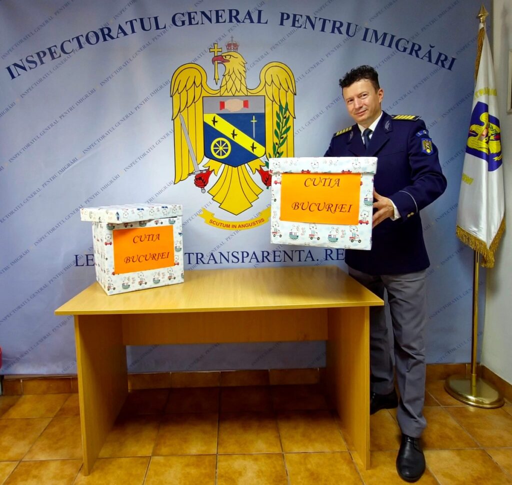 Polițiștii de imigrări au amplasat la sediul Inspectoratului General pentru Imigrări “Cutia Bucuriei”, dedicată solicitanților de azil și beneficiarilor unei forme de protecție internațională, cazați în centrele regionale de proceduri și cazare a solicitanților de azil.