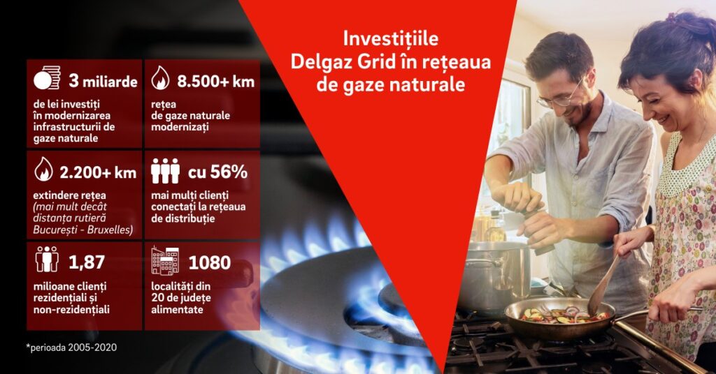Compania Delgaz Grid, parte a Grupului E.ON România, a investit 2,9 miliarde de lei (677 mil. euro) începând din anul 2005, în principal pentru modernizarea rețelei de distribuție a gazelor naturale care alimentează în prezent mai mult de 1.080 de localități din 20 de județe situate în nordul țării.