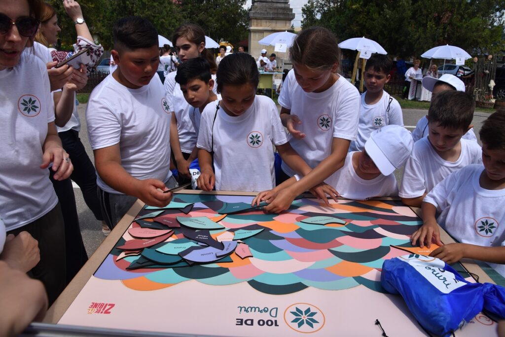 Pe 20 Iunie, de ziua Comunei Corlățel, cele 10 categorii de doruri au devenit repere identitare într-un traseu al comunei, marcate cu un disc simbol pentru fiecare categorie în parte. Pe cele 10 discuri este gravată steaua în opt colțuri care se regăsește în întreaga comună, fie pe haine sau pe case. Tot în cadrul proiectului, copiii cu vârste între 8-13 ani, au primit biciclete cu care au avut de parcurs un traseu de 10 km. La fiecare disc-simbol amplasat, copiii au fost provocați să răspundă la o serie de întrebări din categoria respectivă, iar pentru fiecare răspuns corect au primit o piesă dintr-un puzzle uriaș. La finalul traseului, cei mici au completat Puzzle-ul celor 100 de Doruri, un puzzle care îi apropie, simbolic, de cei aflați departe.