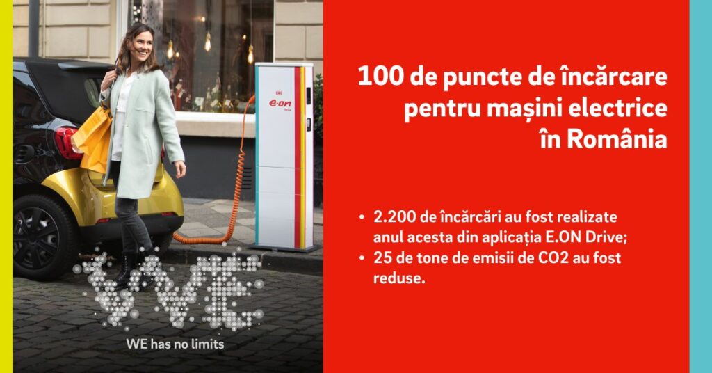Compania E.ON Energie România a instalat până în prezent circa 100 de puncte de încărcare publice și private pentru mașinile electrice, prin proiectul E.ON Drive. Stațiile sunt în majoritate rapide, cu o putere de 50 kW în curent continuu și permit încărcarea a până la 80% din nivelul bateriei în 30-40 de minute, în funcție de capacitatea acesteia și modelul mașinii.